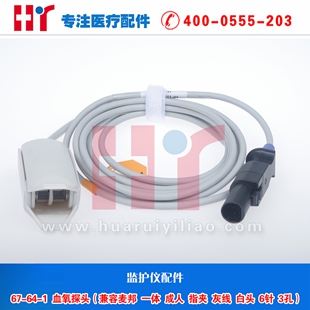 67-64-1 血氧探头(兼容麦邦 一体 成人 指夹 灰线 6针3孔)