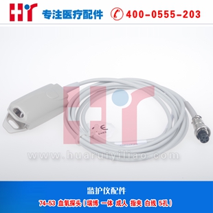 74-53 血氧探头 湖南瑞博一体成人指夹探头-LF-白线-5孔