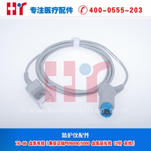 76-66监护血氧电缆(兼容迈瑞PM6000 血氧延长线12针灰线)
