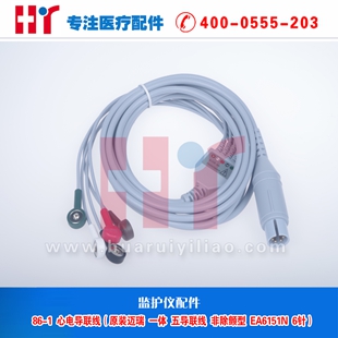 86-1 监护心电导联线(原装迈瑞 一体 五导 非除颤型 6针)