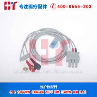 89-2 监护心电导联线 (兼容迈瑞 西门子 短线三导联线 扣式)