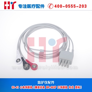 93-39 监护心电导联线(兼容光电 BR-903P 三导联线 扣式)