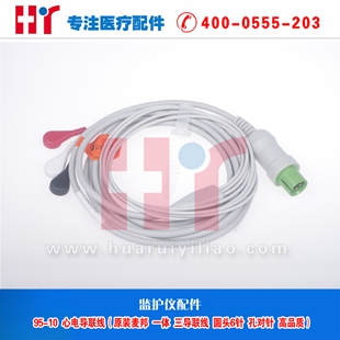 95-10 心电导联线 (原装麦邦 一体 三导联线 圆头6针)