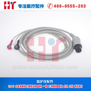 114-7心电导联线(兼容迈瑞 通用一体 三导圆头 大头六针高品质)