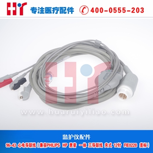 96-43 心电导联线(兼容惠普 一体 三导 夹式 12针 美标)