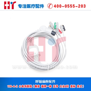118-4-2 心电导联线(兼容 通用一体 五导 大头6针 美标 夹式)