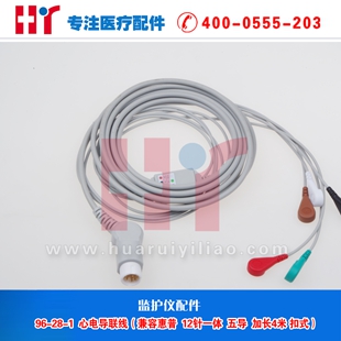 96-28-1 心电导联线(兼容惠普 12针一体 五导 加长4米 扣式)