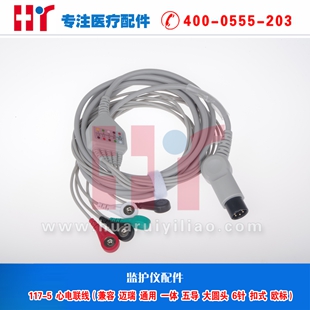 117-5 心电联线(兼容迈瑞 通用 一体五导 大圆头6针 扣式 欧标 )