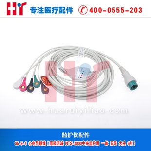 95-9-1 心电导联线(原装诺诚 中央监护用 一体 五导 大头 6针)
