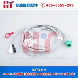 94-10-4 心电导联线(兼容宝莱特M7000监护仪用 12针 三导 扣式)