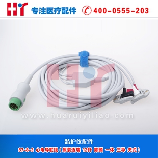 87-8-3 监护心电导联线( 原装迈瑞12针除颤一体三导040-000964夹)