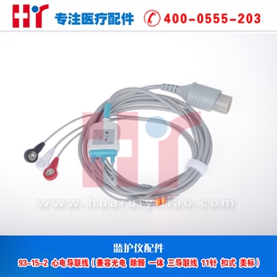 93-15-2 心电导联线(兼容光电 除颤 三导 11针 扣式 美标)