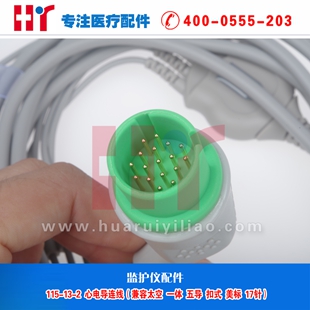 115-13-2 心电导连线(兼容太空 一体 五导 扣式 美标 17针)