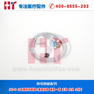 253-5 心电图机导联线(兼容 迈瑞 通用 一体 五导 大头 六针)