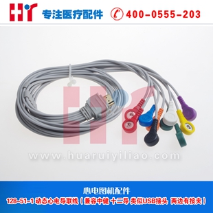 128-51-1动态心电导联线 兼容中健 十二导类似USB接头 两边有按夹