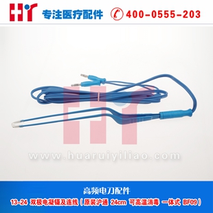 HR13-12 电凝镊子及连线 (国产 双极电凝镊子连线 不可高温高压消毒 非标准接口 蓝线)