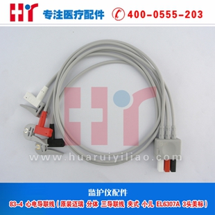 83-4 原装迈瑞分体三导 夹式小儿 EL6307A 3头 美标 心电导联线