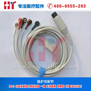 86-3 监护心电导联线(原装迈瑞 一体 五导联线 除颤型)