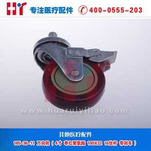 165-36-11 万向轮 (4寸 枣红聚氨酯 100X32 16丝杆带刹车)
