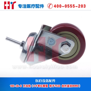 165-36-6 万向轮 3寸枣红聚氨 轮子7532 丝杆直径8MM