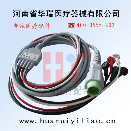 HR87-5 迈瑞心电导联线 (原装迈瑞PM6000一体五导联线 圆头12针 高品质 彩线)