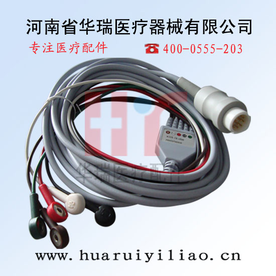 HR87-8 迈瑞心电导联线 (原装 迈瑞PM6000 一体五导联线 圆头12针 带电阻 高品质)
