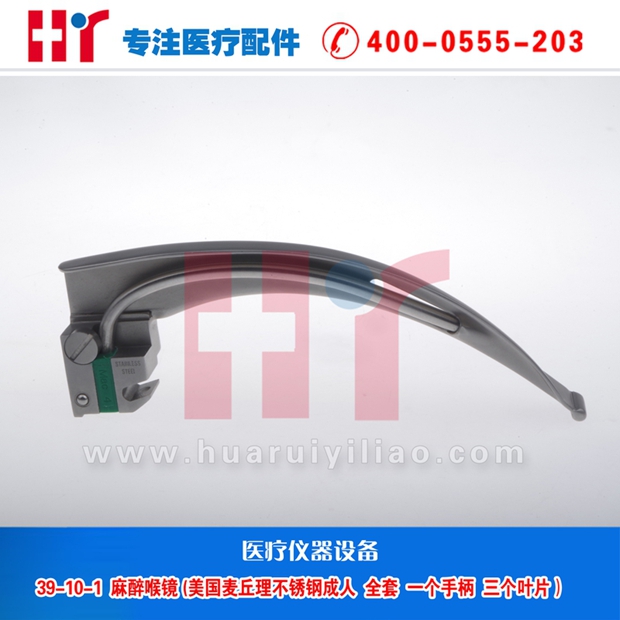 39-10-1 美国麦丘理不锈钢成人 麻醉喉镜 全套 一个手柄