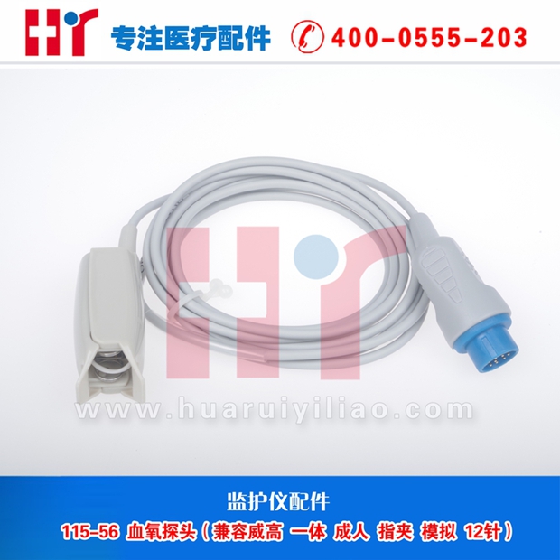 115-56血氧探头(兼容威高 一体 成人 指夹 模拟 12针)
