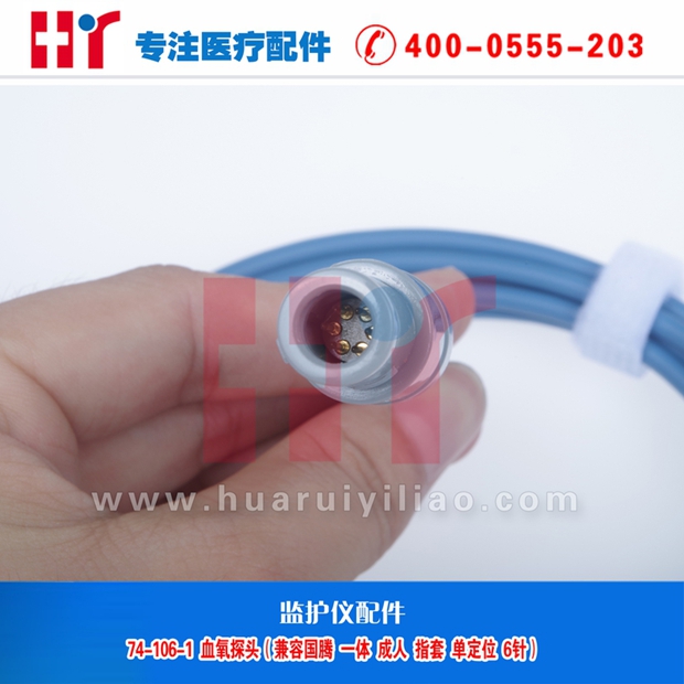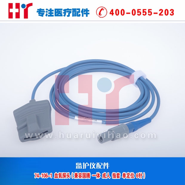 74-106-1 血氧探头 兼容国腾一体成人指套血氧探头 单定位6针