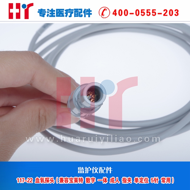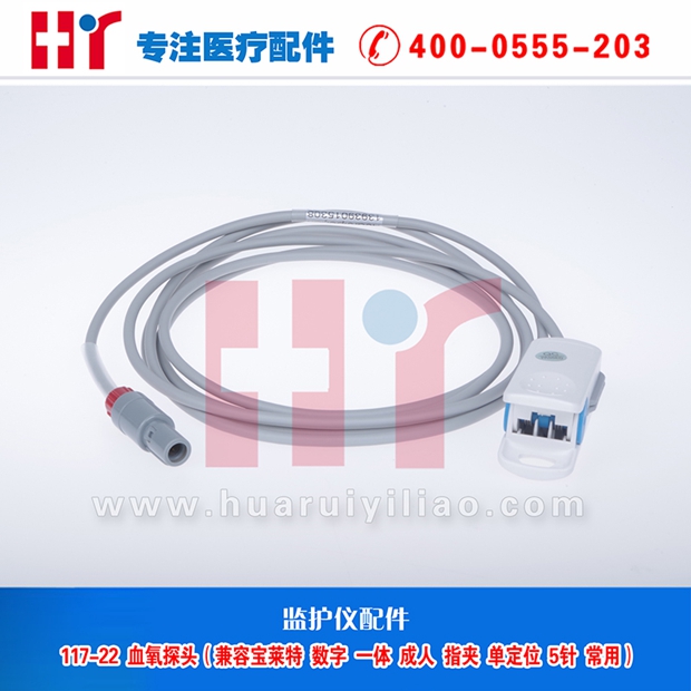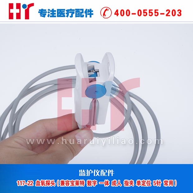 117-22 兼容 宝莱特 数字 一体 成人 指夹 血氧探头 单定位 5针