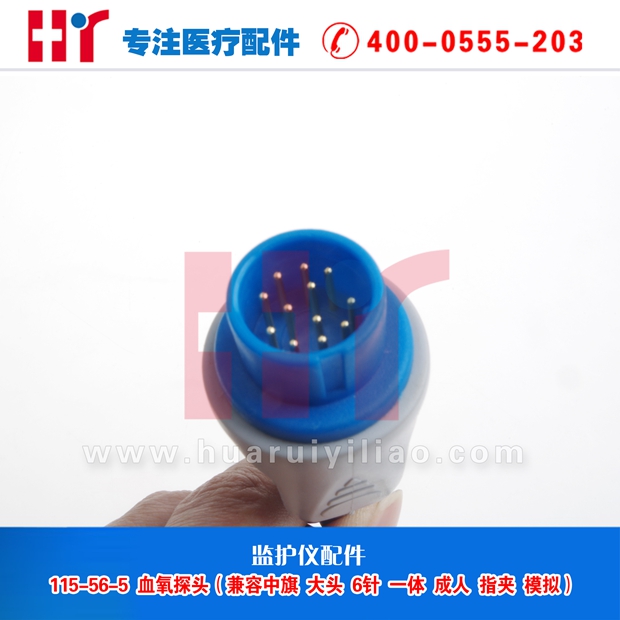 115-56-5 血氧探头(兼容 中旗 大头6针一体 成人指夹 模拟)