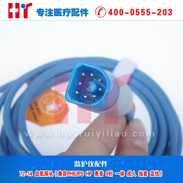 72-14 血氧探头(兼容PHILIPS/ HP/惠普 8针 一体 成人 指套)