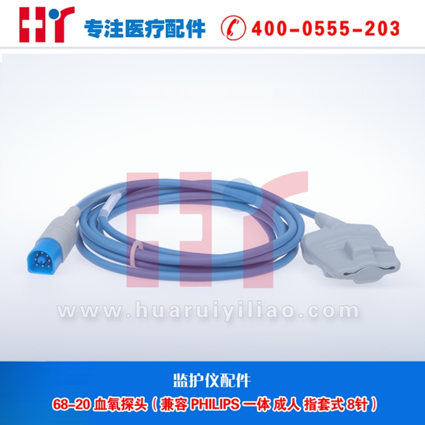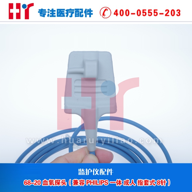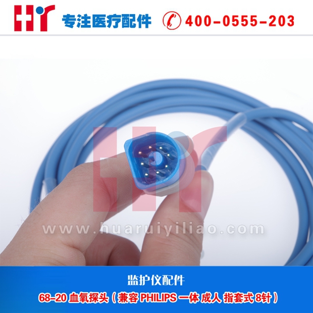 68-20 兼容PHILIPS HP惠普8针一体成人指套血氧探头-LF-蓝线