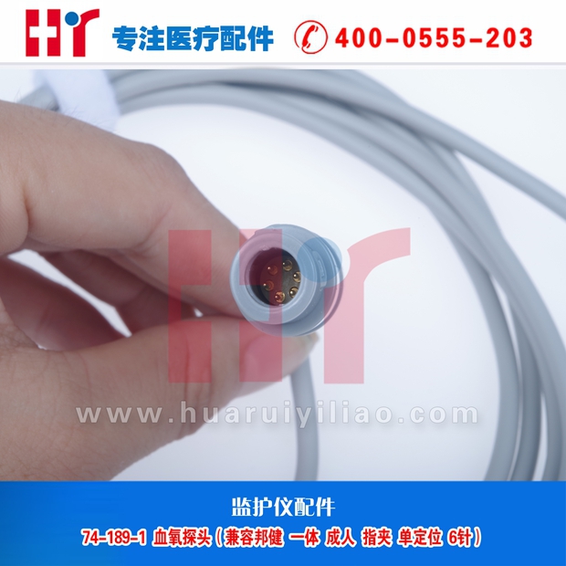 74-189-1 血氧探头(兼容邦健 一体 成人指夹 单定位 6针)