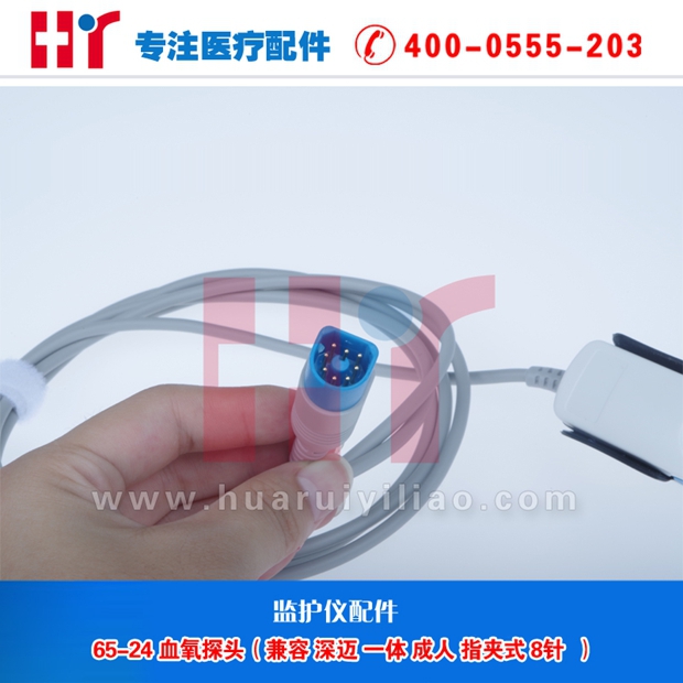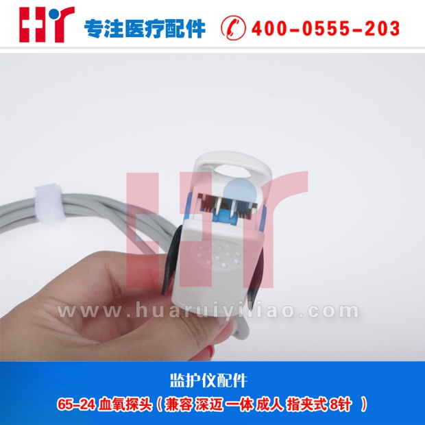 65-24 兼容-深迈8针一体成人指夹血氧探头 灰线