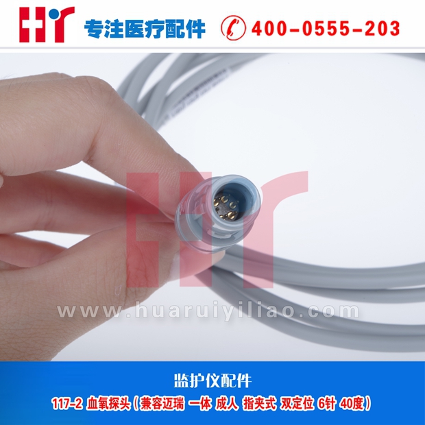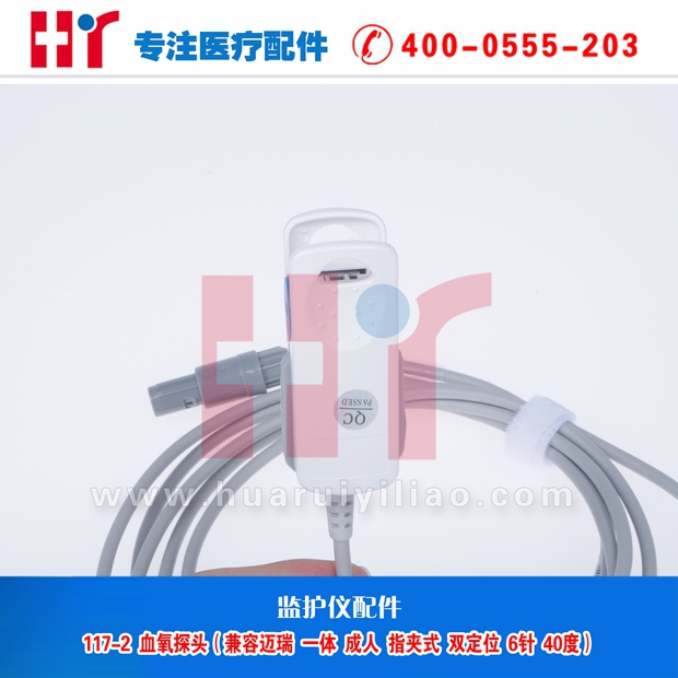 117-2 血氧探头(兼容迈瑞 一体 成人 指夹式 双定位 6针 40度)