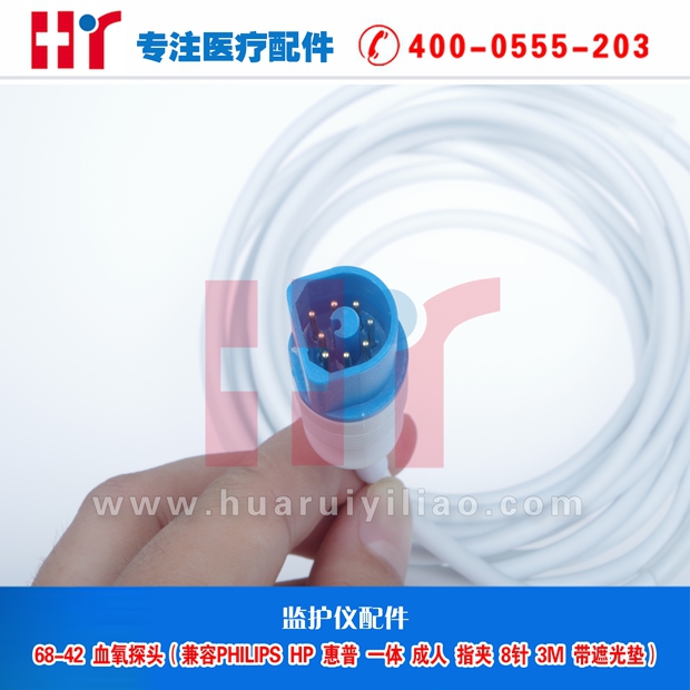 68-42 血氧探头(兼容PHILIPS 一体 成人指夹 8针3M 带遮光垫)