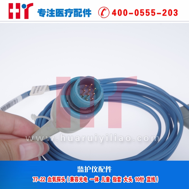 77-22 监护血氧探头(光电 一体 儿童指套大头10针蓝线 尤迈)