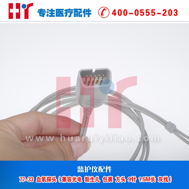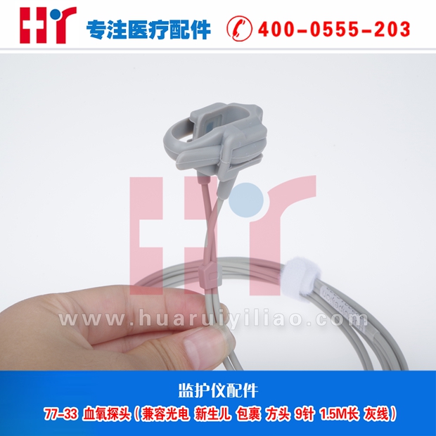 77-33 监护血氧探头(兼容 光电 新生儿 包裹 方头 9针 1.5M长)