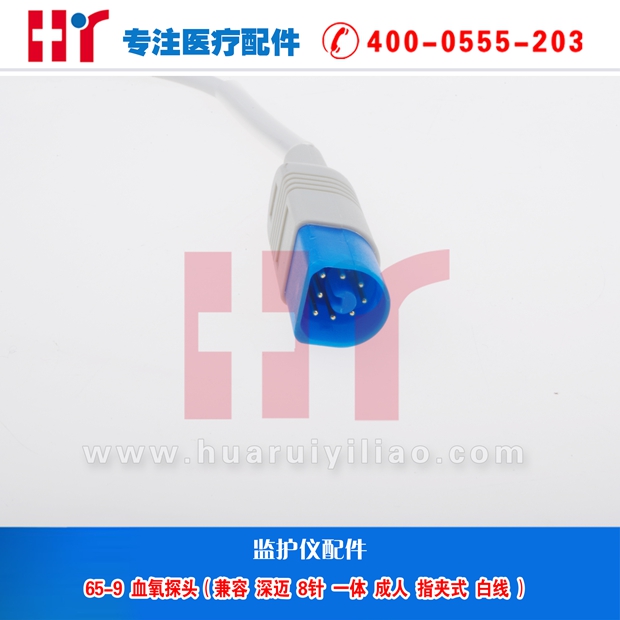 65-9 血氧探头(兼容 深迈 8针 一体 成人 指夹式 白线 )