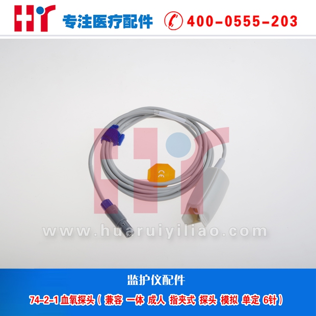 74-2-1 血氧探头(兼容 一体 成人 指夹式 探头 单定 6针)