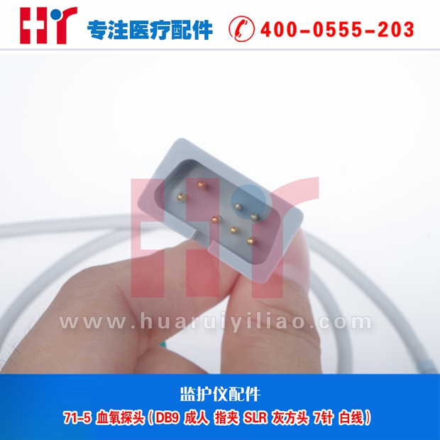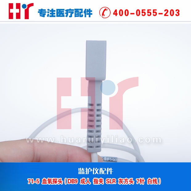 71-5 血氧探头(DB9 成人指夹 SLR 灰方头 7针 白线)