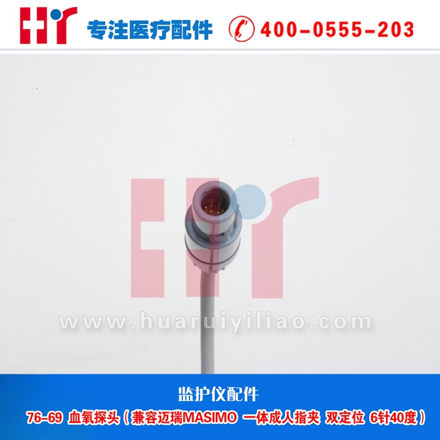 76-69 血氧探头(兼容迈瑞MASIMO 一体成人指夹 双定位 6针40度)