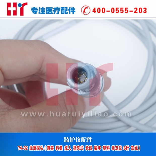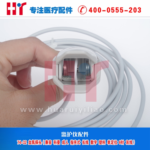 74-32血氧探头(兼容科曼 成人指夹式 长线数字 单定位 6针灰线)