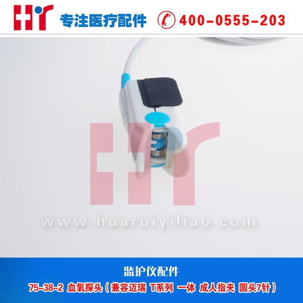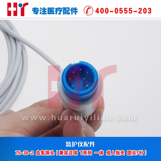 75-38-2 血氧探头(兼容迈瑞 T系列 一体 成人指夹 圆头7针)