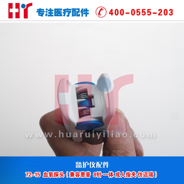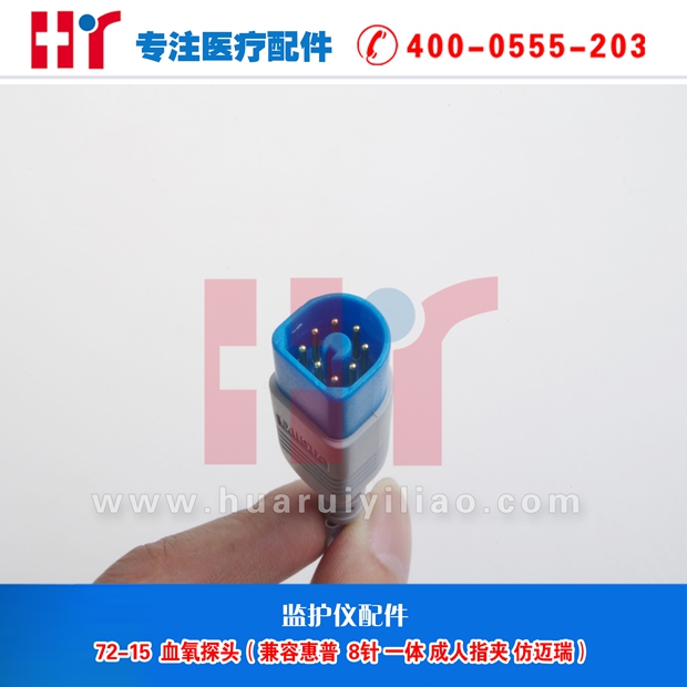 72-15 血氧探头(兼容惠普 8针 一体 成人指夹 仿迈瑞 蓝线)