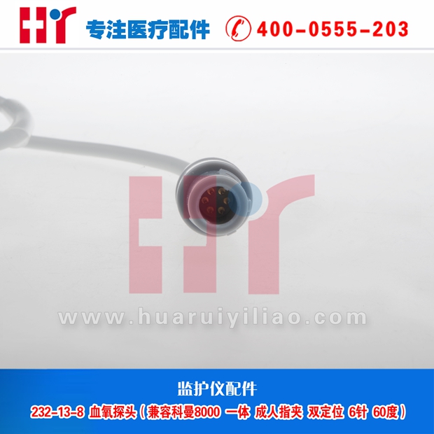 232-13-8 血氧探头 兼容科曼8000 一体成人指夹 双定位 6针60度
