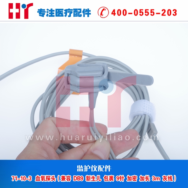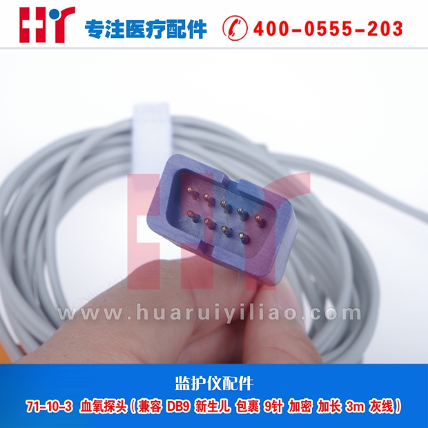 71-10-3血氧探头 (兼容DB9 新生儿包裹9针 加密加锌片加长3m灰线)