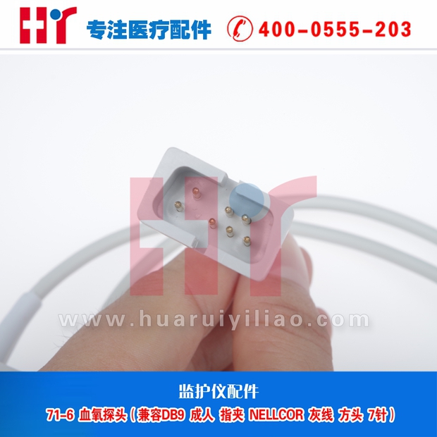 71-6 血氧探头 (兼容 成人 指夹 灰线 方头 7针)