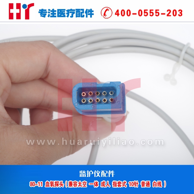 80-11 血氧探头(兼容太空 一体 成人 指套式 10针 普通 白线)